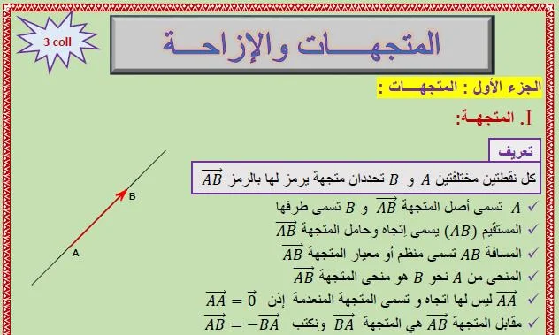 السنة الثالثة اعدادي الاستعداد للجهوي لمادة الرياضيات درس في المتجهات والإزاحة
