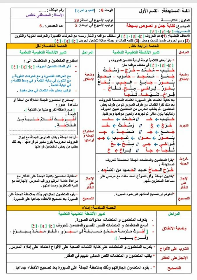 جذاذات الكتابة الأسبوع 29 للمستوى الاول